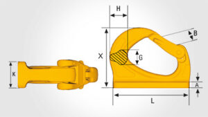 | CAD | Part no | Code | WLL t | For chain size | L | B | F | A | C | Weight kgs |